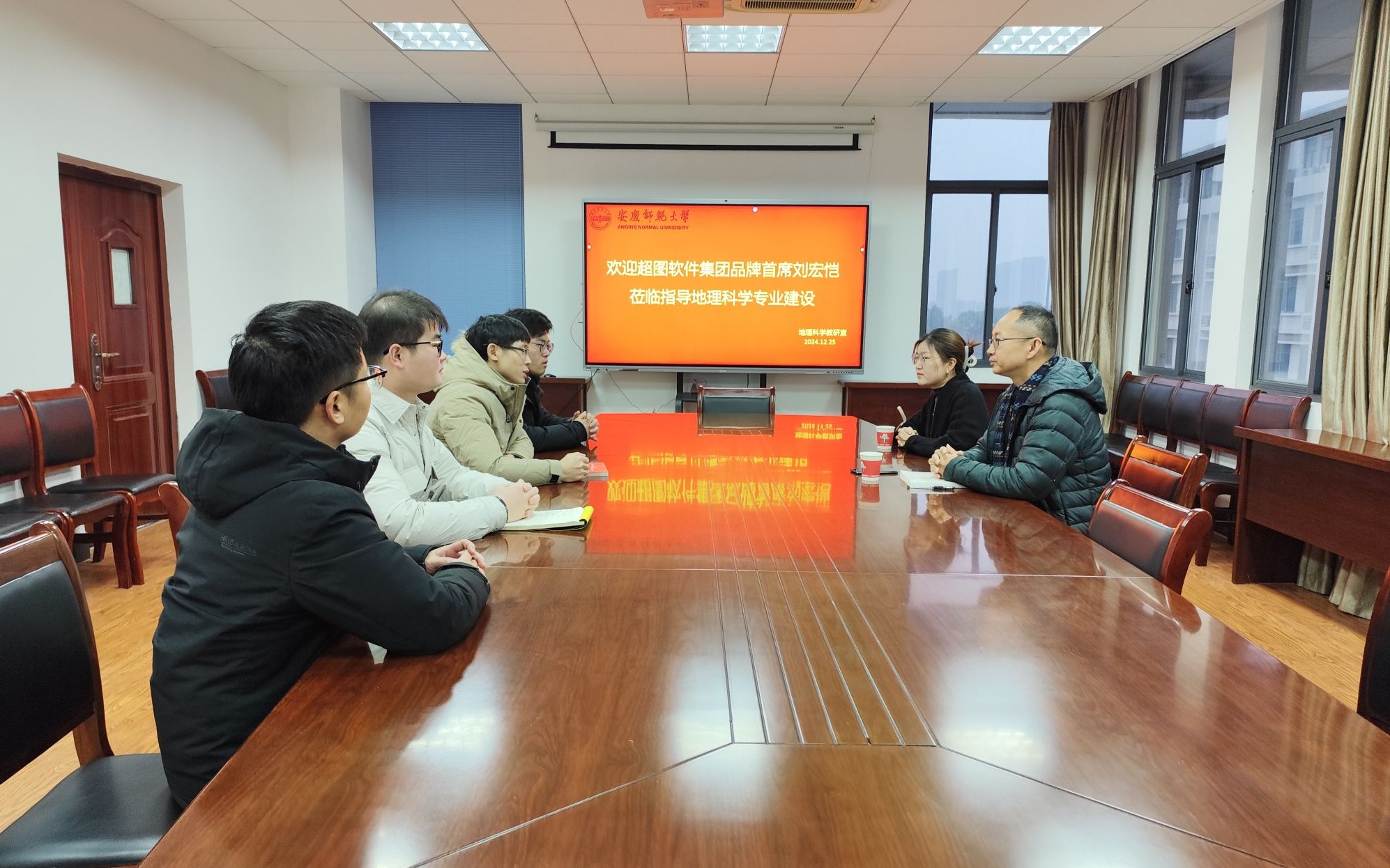 12月25日下午,超图软件品牌首席刘宏恺一行应ylzzcom永利总站线路检测地理科学专业邀请,到访我院开展合作交流。学院副书记黄建平、副院长朱磊、地理科学专业教研室主任顾洪亮等出席交流会。