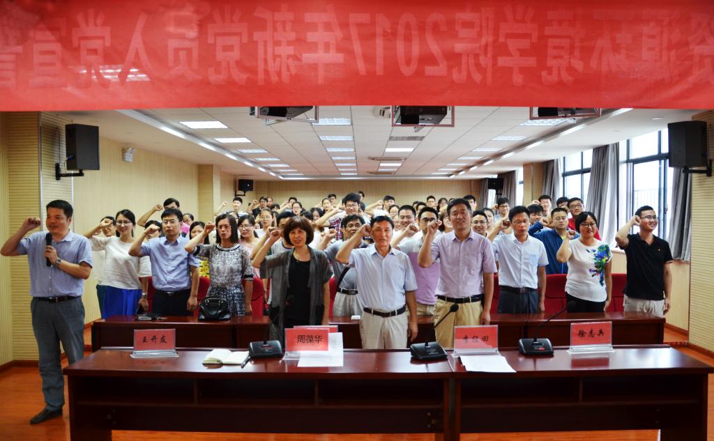 6月30日下午,我院举行庆祝“七一”党的生日新党员入党宣誓暨老党员重温入党誓词大会,党总支书记李经田、副院长徐志兵及党总支委员、党支部书记、全体党员、入党积极分子参加仪式,院长周葆华主持仪式,副书记王开友领誓。